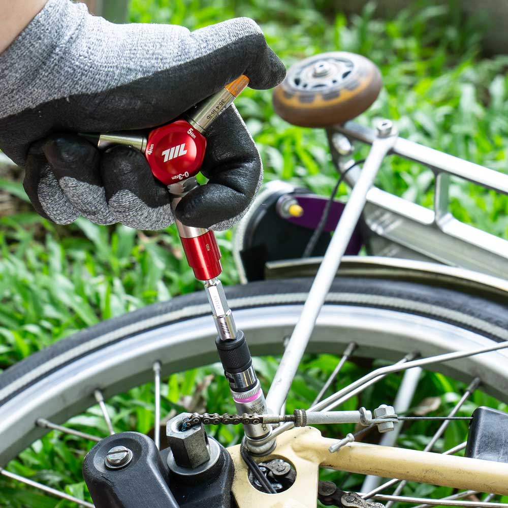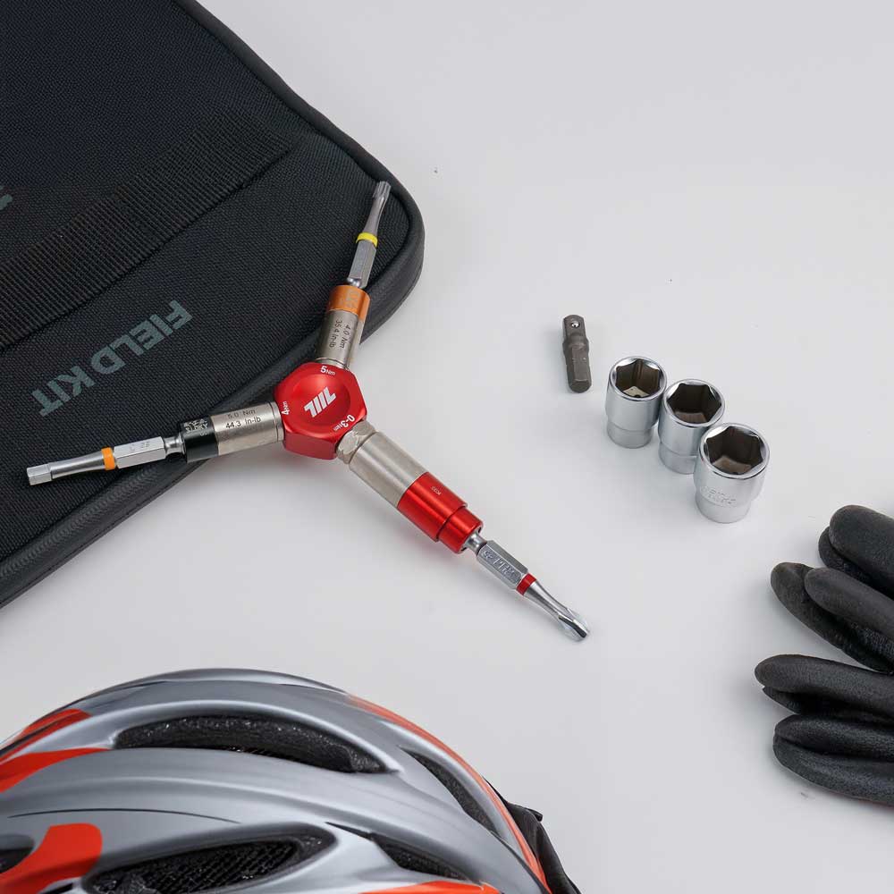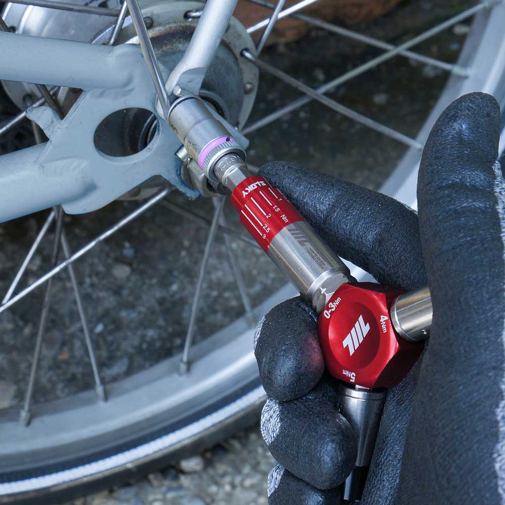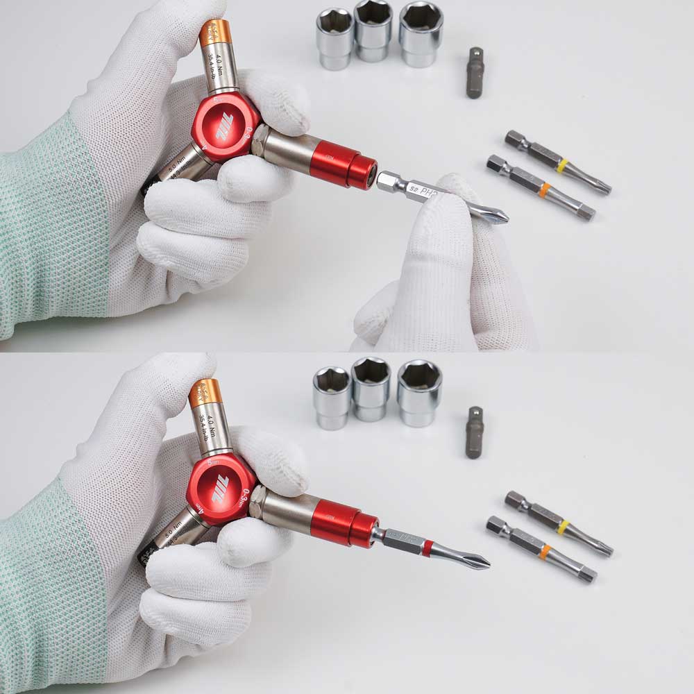 3-in-1 自転車用精密締結工具 | 0-3Nm 段階式&4/5Nm 固定トルクレンチ | 1/4″六角ビットホルダー(レッド)