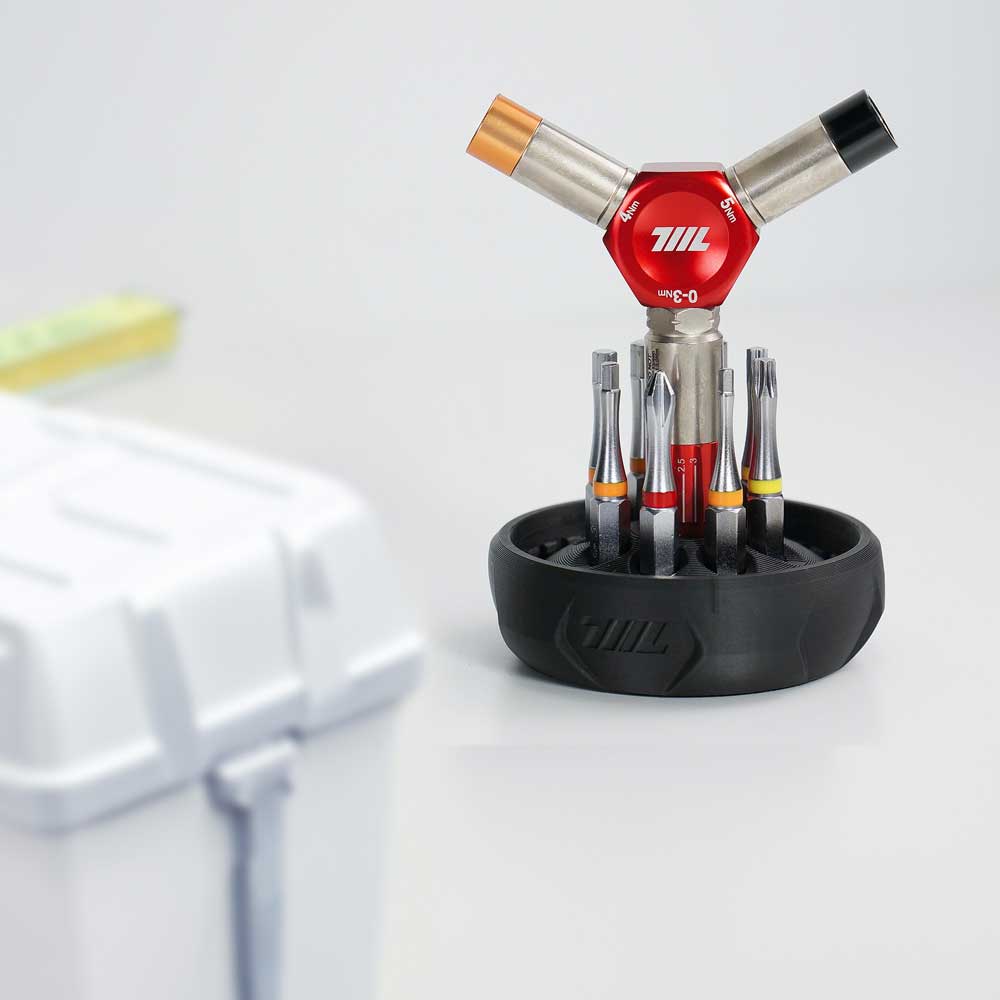 711L EDCツールの大きな強みのひとつは、カスタマイズ可能な接続方法が豊富にあることです。必要なトルクを調整し、自分だけのツールセットを作成できます。例えば、1/4インチラチェットをYドライバーに取り付け、そのYドライバーに作業に適した1/4インチビットをセットできます。また、ラチェットをロリポップに装着することで、より高い機械的アドバンテージと安定したグリップを得ることができます。さらに、磁石は自動的に調整され、どのツール先端にもスムーズに取り付け可能です。
